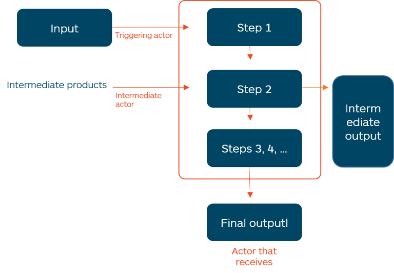 - Intermediate actors to which the process is related and by means of which product.