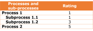 Now, with the processes rated, you can address those with ratings of 1 and 2, at first, and then you can evaluate the others. Continue to step 2.